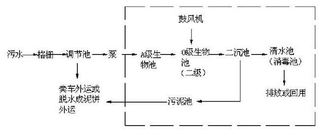 地埋式生活污水处理装置工艺流程图:
