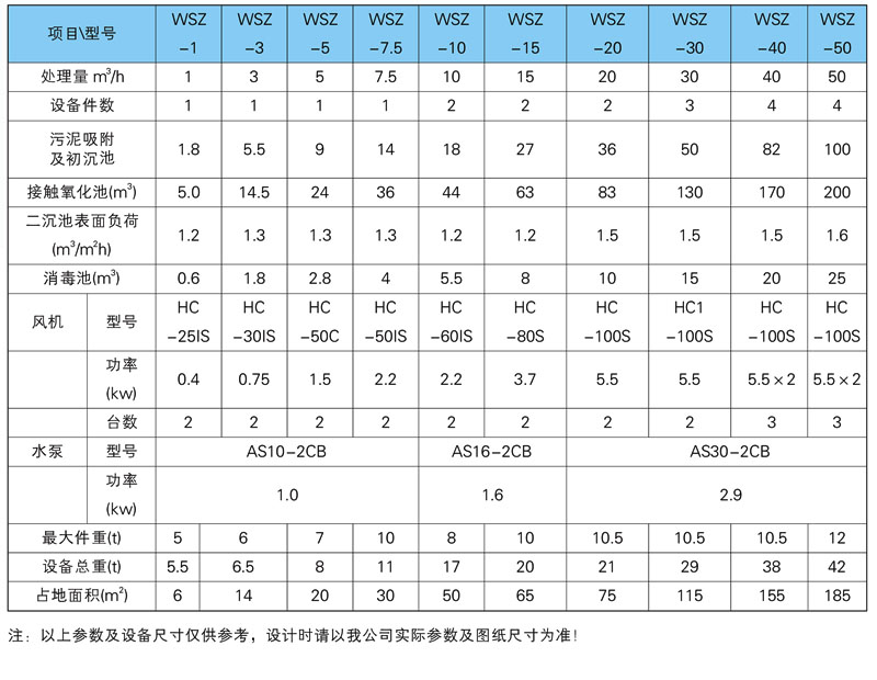 地埋式设备主要参数: