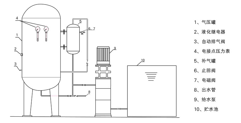 隔膜气压供水装置。一次充气常年使用,水质不受污染。