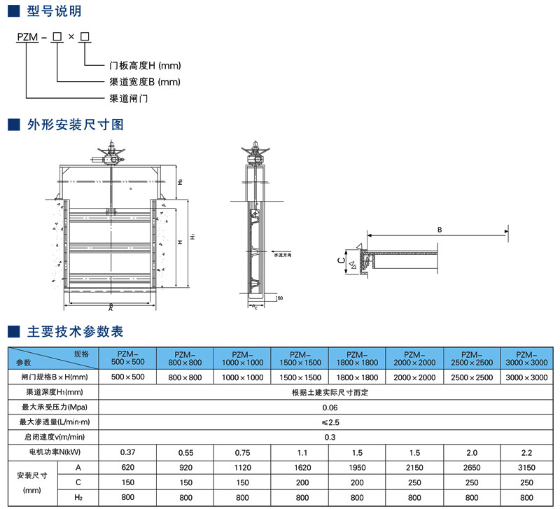 PZM型不锈钢渠道闸门主要用于给水、排水工程,用于截断渠道内的水流,其工作介质为常温下的原水、清水、污水。