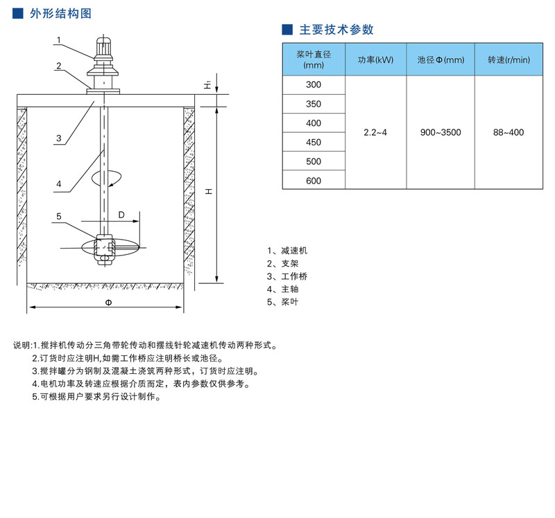 用途和简介:本机适用于大中型污水处理厂投加药剂的溶液搅拌。