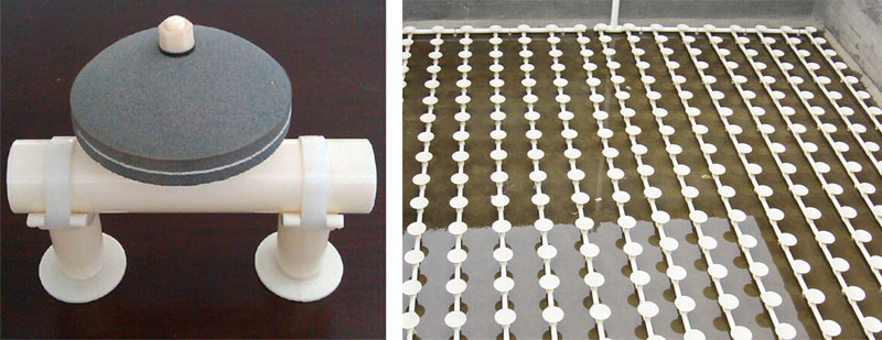 适应性强 适合于间隙曝气和连续曝气,即连续曝气时采用拱形向上,间隙曝气时采用拱形向下,无堵塞现象。