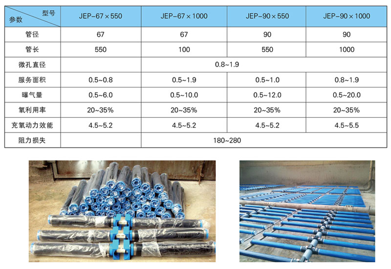 微孔管式曝气器的气体扩散胶板是由优质合成橡胶制成的,橡胶膜片扩散出来的气泡直径小,气液界面面积大,因此具有较高的传质速率,充氧效率高,这样与其他现行曝气装置相比,可以大大节省电耗,降低污水处理的运行成本。、橡胶膜片开有大量的自闭孔眼,随着充氧和停止运行,孔眼都能自动张开和闭合,污水决不逆渗于曝气管内,当鼓风机再启动时薄膜释出气泡,同时因膜片的弹动特性将附的污泥弹离,这项免维修的特点更是活性污泥施工时的独一无二的选择。管式微孔曝气器满布在曝气池底部,在池中溶解氧均匀,可适用于各种池型和深度,也可以对原有曝气池进行改造,使其提高效果。由于微7L曝气器扩散胶采用进口三元乙丙优质橡胶制成的,它具有优良的物理,机械性能配件以及空气管道是采用工程塑料,聚丙烯和ABS组合的材质,因此不怕锈蚀,在很大程度上减少了运行维修工作量。