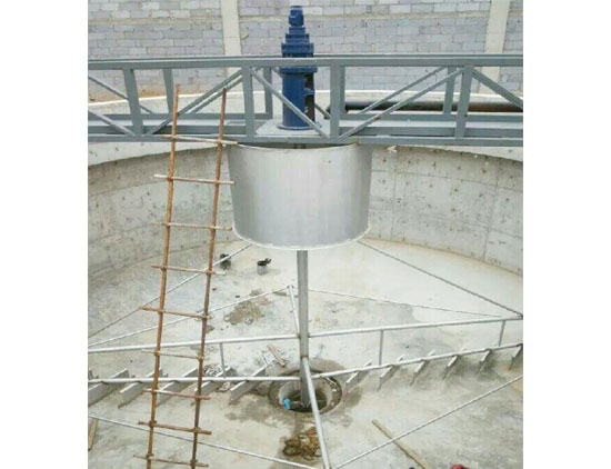 搅拌机叶轮下部桨叶在澄清池一反应室完成机械反应,经加药混合后所产生微絮体与回流泥渣中的原有矾花再度碰撞吸附,形成较大絮粒,然后由叶轮提升到二反应室。再经折流到澄清区进行分离。清水上升由集水槽引出,泥渣在澄清区下部回流到一反应室,沉淀于池底的污泥由刮泥机刮集通过池底泥阀控制排出,达到原水澄清分离的效果。
