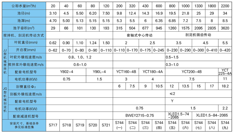 JJ(G)型机械搅拌澄清池搅拌机、刮泥机是全国通用机械加速澄清池(S774)的主要配套设备。常用于生活饮用水、工业给水的原水处理以及工业废水的三级处理。水质软化处理等给排水处理过程中的澄清阶段。