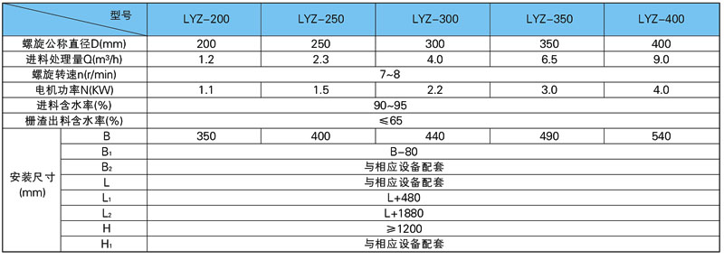 LYZ型螺旋压榨机适用于城镇污水处理厂、住宅小区污水预处理装置、市政雨/污水泵站及自来水厂等的栅渣处理,它主要与输送机或格栅等设备配套使用,将捞出的栅渣进行压榨脱水。