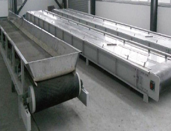 该设备采用连续式槽形带式,物料由格栅或脱水机卸料口落入输送带上,在电动滚筒的驱动下,物料从一端移动到另一端,末端与垃圾桶相衔接,再另行处理。